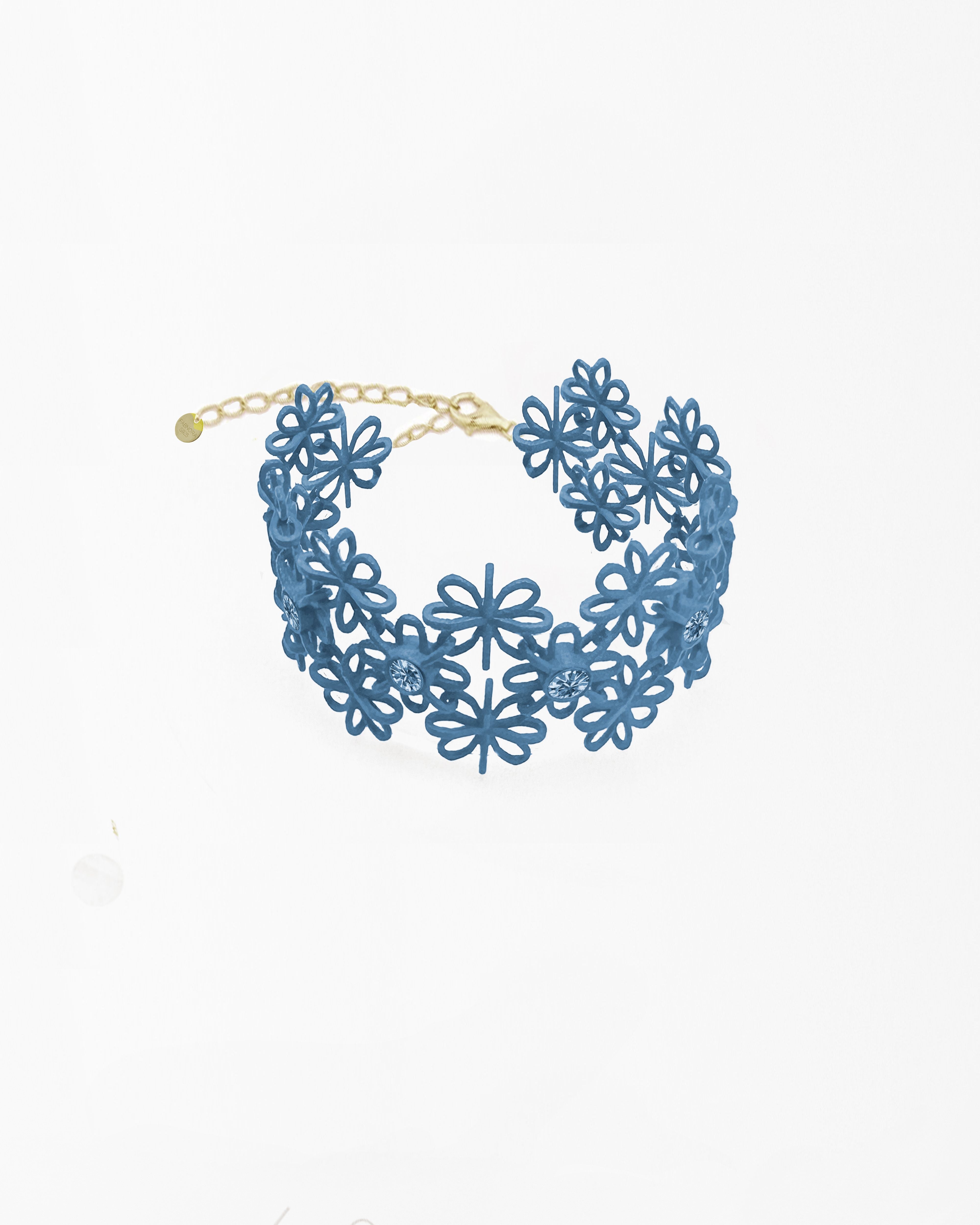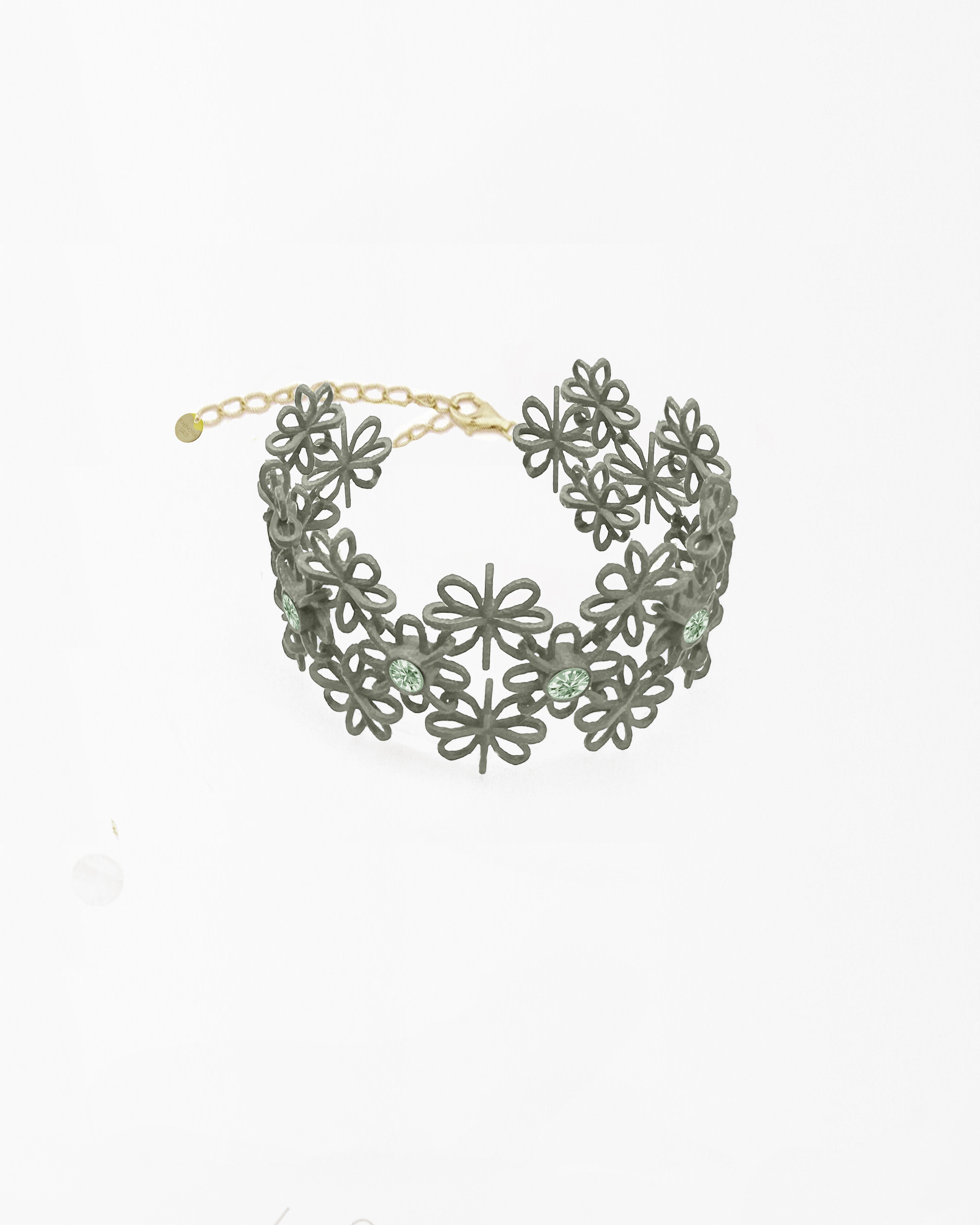 FAB Lace reflects the delicate patterns and designs of precious lace and adds the perfect sparkling accent. Our unique 3D algorithm transforms these historic patterns into light and airy modern jewelry. 3D-printed and hand-finished with Austrian crystals, FAB Lace bracelets are complemented with carefully handcrafted precious metal clasps.